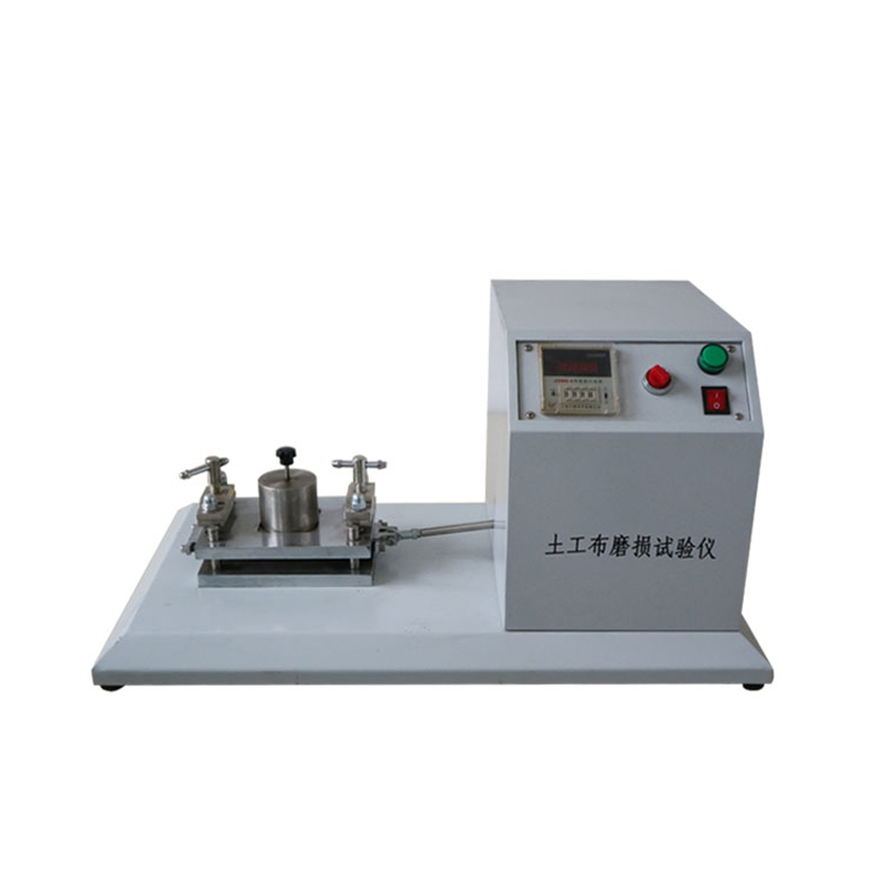 本仪器用于测定机织土工布、非织造土工布及其相关产品的抗磨损性能。原理:将试样固定在平台上,在规定压力与摩擦动作的条件下,使具有规定表面特性的磨料与之摩擦,最后测试式样摩擦前后拉伸强力,以强力损失的百分率来描述试样的耐磨损性能。符合GB/T17636《土工布及其有关产品——抗磨损性能的测定砂布/滑块法》。