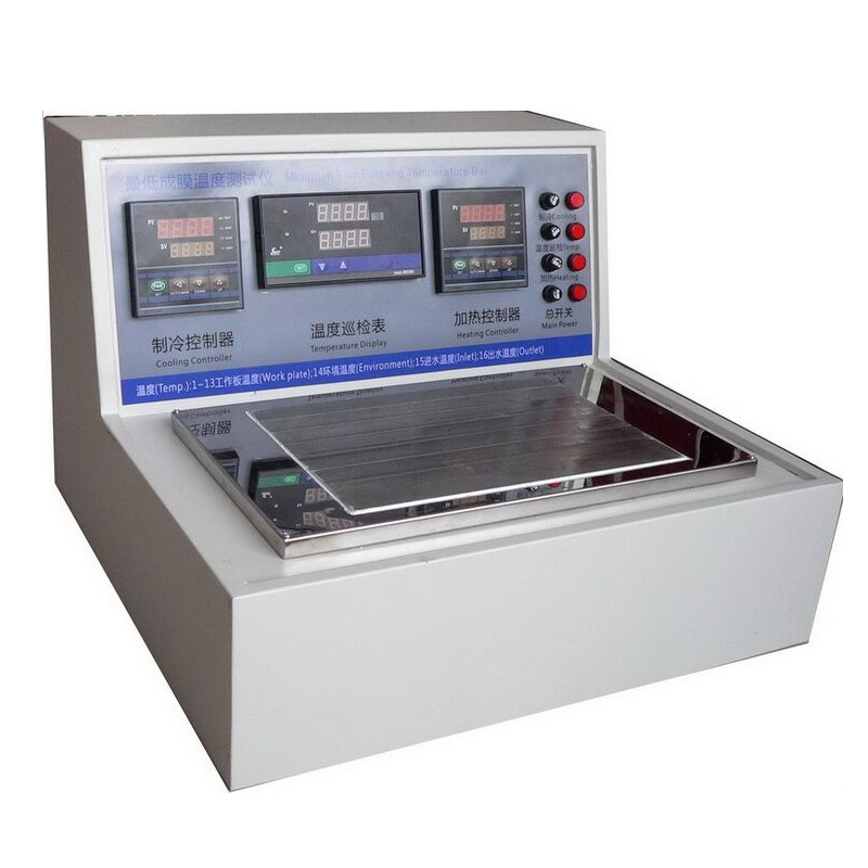 聚合物乳液用作涂料、粘合剂、化纤织物、皮革、纸张等表面的处理剂时,它的成膜性是重要的技术指标之一。研究者为了制造出更低成膜温度的新产品来,不断地改进其技术规范和配方。因此检测出最低成膜温度(MFT)是此类涂料的重要指标,能够方便的测出MFT的理想仪器,即是QMB-II型最低成膜温度测定仪了。